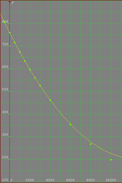 Al graficar los puntos de la tabla anterior se aprecia una curva suave que conserva linealidad aproximadamente en el rango de altitud de 0 a 4000 m sobre nivel del mar. Y para este rango de valores de altitud se puede aplicar una ecuación simplificada obteniéndose unos valores con una dispersión no mayor al 2%.
