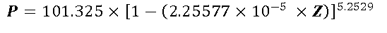 P = 101.325 – (0.00992125 * Z)